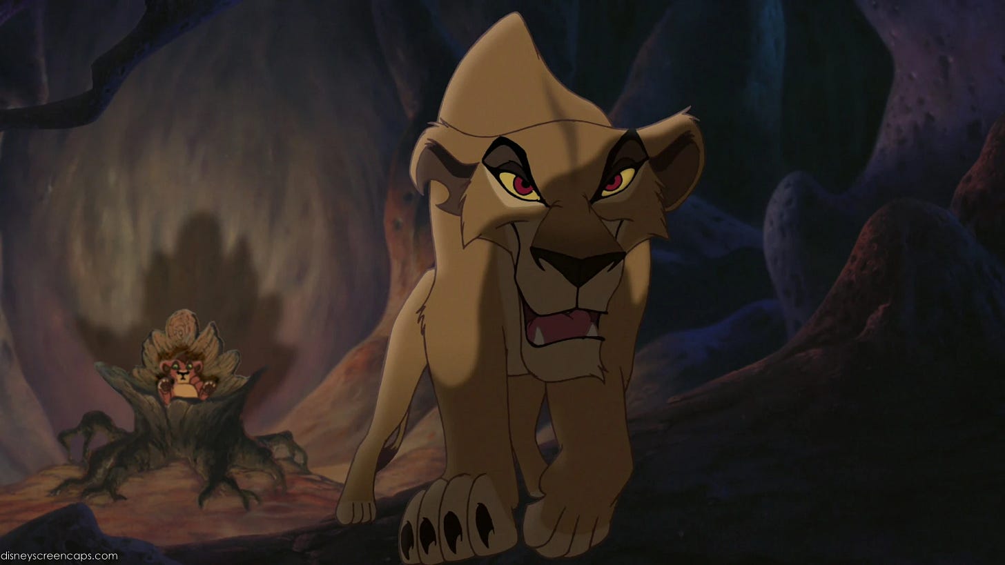 Но я и не отказываю женщине в праве быть плохой. Быть настоящим злом без всяких «но» и объяснений. И когда львица Зира в мультфильме погибает, нам ее совсем не жалко — ровно так, как и Шрама в первой части.